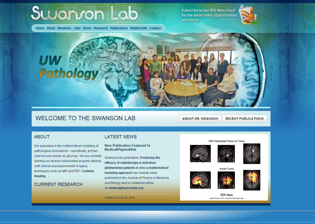 Website designed in 2010 for the Swanson lab which was previously at the UW Medical Center, and is now at Northwestern University. We worked closely with the lab to make their website very visual and emphasize the work done on a daily basis. Artwork from the lab was incorporated into the site design.